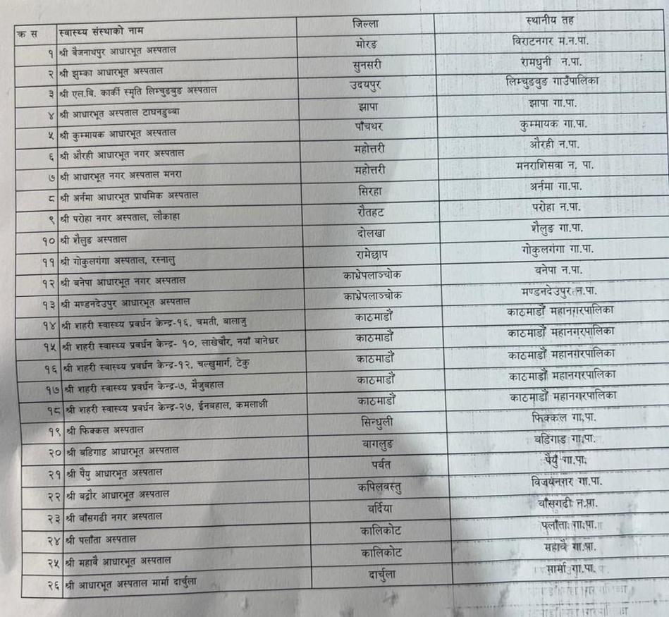 The Board stated that, in line with the Health Insurance Act, 2074 (First Amendment, 2081), which aims to establish at least one first service point in each local unit, new hospitals have been listed.